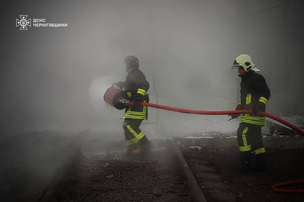 Drones hit an oil refinery and an agricultural enterprise in the Prylutskyi district that caused a fire to break out, while a drone attack on an energy facility in the Koriukivka community temporarily left 55,000 subscribers without power, and an attack damaged energy facilities and railway infrastructure in the Nizhynskyi district, which also left some villages without electricity.