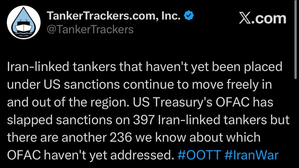 According to TankerTrackers, Iranian-linked tankers that had yet to be sanctioned by the US Office of Foreign Asset Control continued to move freely in and out of the Strait of Hormuz, noting there were approximately 236 known Iran-linked tankers that had still not been sanctioned.