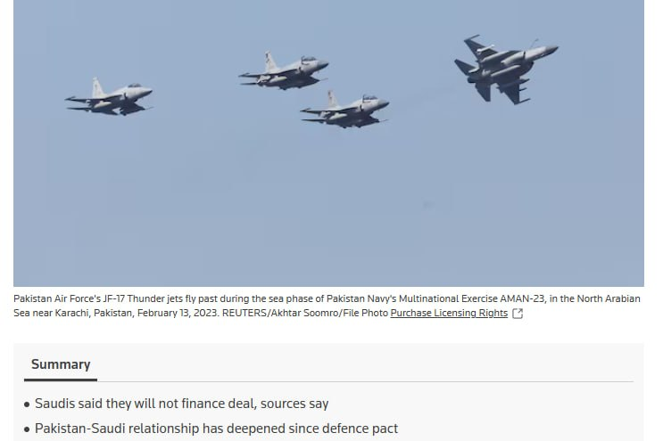 Pakistan placed an order worth one and a half billion dollars on hold after Saudi Arabia asked for the agreement to be canned and said it wouldn’t finance the purchase, reported Reuters.