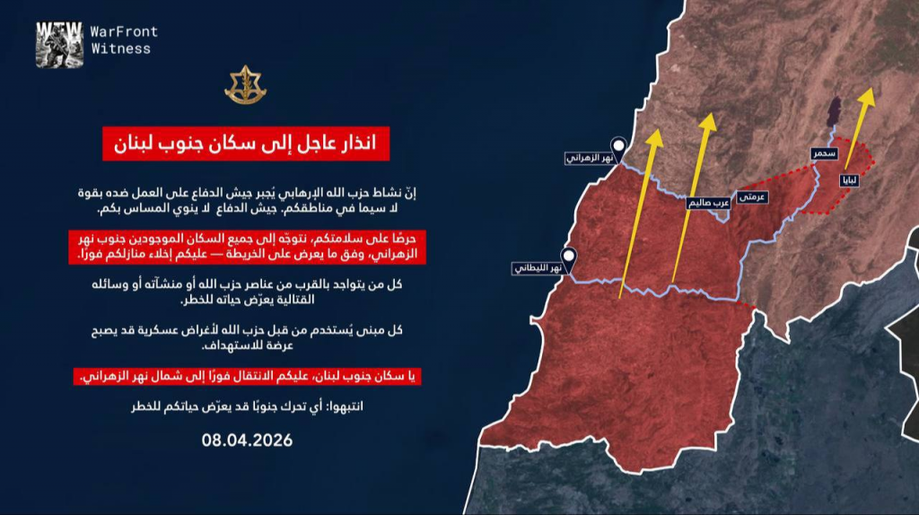 Throughout the early morning on Wednesday the 8th April, Israel continued to bombard southern Lebanon, including Jmaijmeh, Tyre, Srifa, and Yahmar Al-Shaqif area, despite Hezbollah being prepared to stand to a ceasefire they believed had been agreed and had included Lebanon, telling Reuters that an official statement from the party regarding Netanyahu’s announcement about the ceasefire not including Lebanon was expected later.