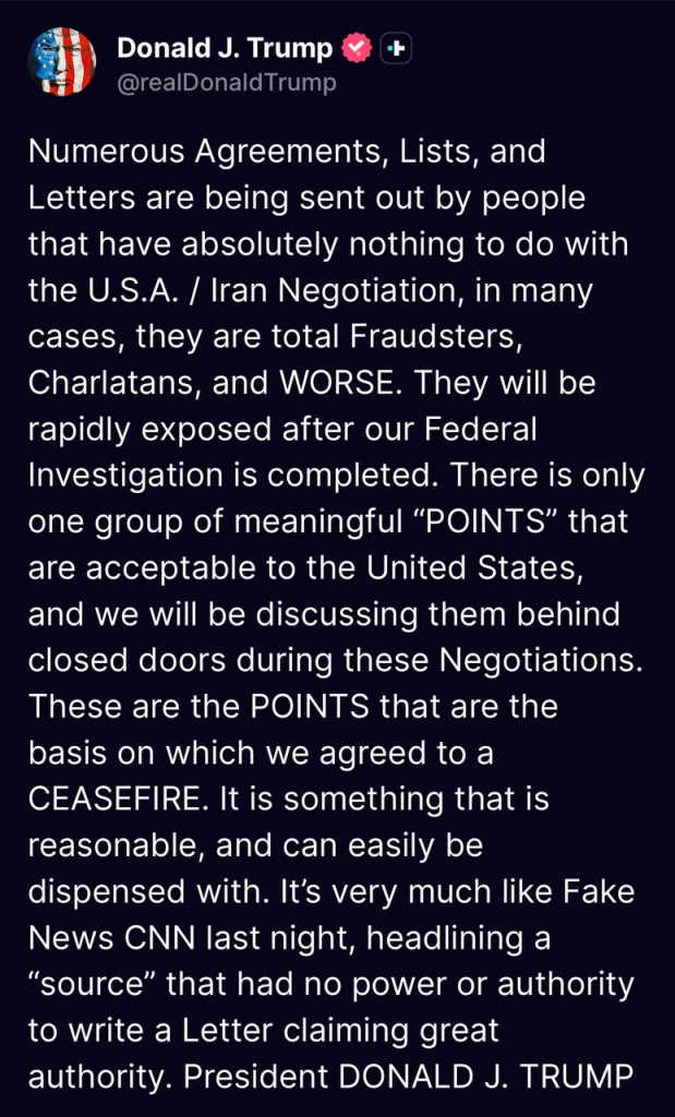 President Trump took to Truth Social to say that numerous agreements, lists or letters had been sent out by various people that had nothing to do with the negotiations, who will be revealed following a federal investigation, stating that people shouldn’t follow Fake News like CNN.