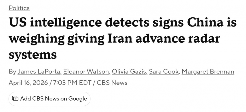 US intelligence indicated that China could have considered supplying Iran with advanced X-band radar systems early in the war, which would have improved detection and tracking of threats like low-flying drones and cruise missiles while strengthening its air defences, reported CBS News, adding that it was unclear if the transfer took place.