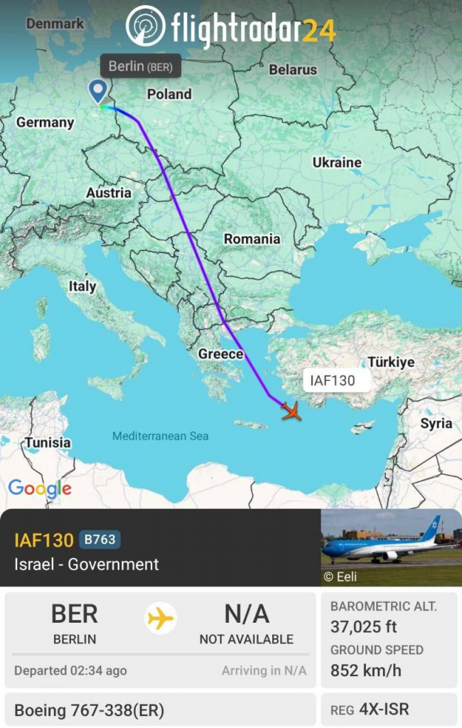 Official Israeli government plane the Wings of Zion returned from Germany to Israel after taking shelter at the outbreak of the war with Iran.