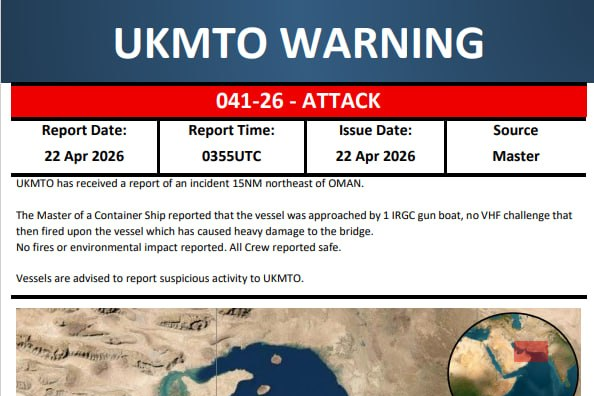 During the early hours of Wednesday morning, around a day after the US seized the Touska by disabling the engine room, capturing the crew and the cargo, Iran’s promised retaliatory strike occurred, as IRGC gunboats approached a container vessel 15 nautical miles northeast of Oman and fired at it (causing heavy damage), while a cargo ship was fired upon several times by the IRGC around 8 nautical miles west of Iran.