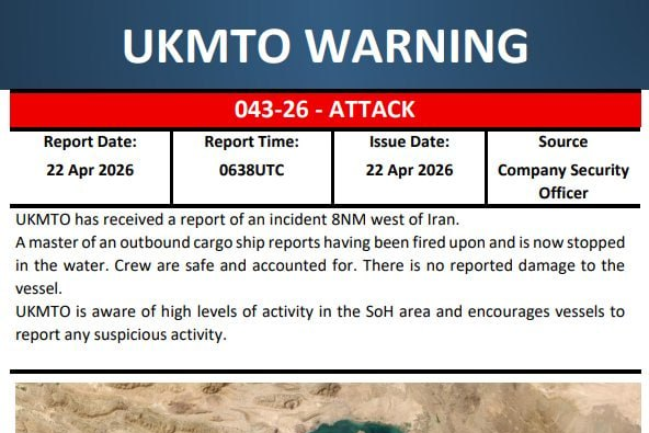 Meanwhile, Iran’s blockade of the Strait of Hormuz for any vessel that isn’t from an Iranian port, (which is the remainder of vessels currently present in the Strait), are unable to move due to an Iranian-enforced blockade that resulted in the earlier ships being attacked, and warnings that other ships will suffer the same consequences if they attempt to pass.