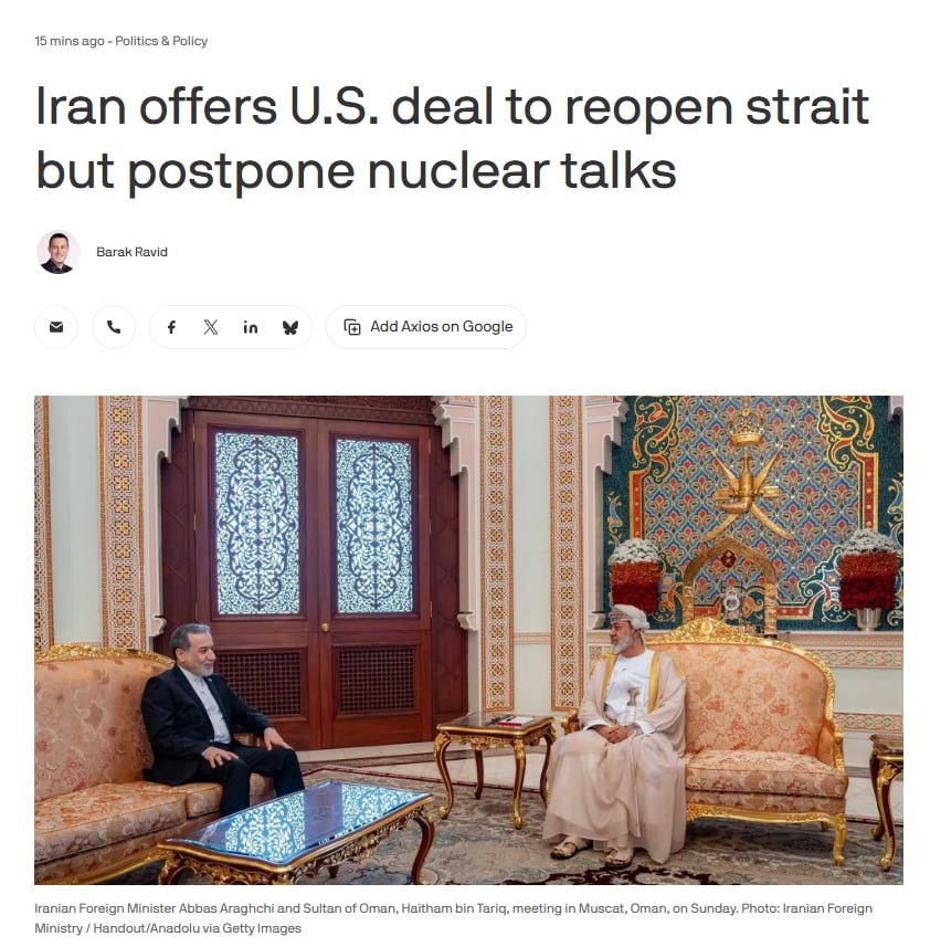 Iran: FM Araghchi said on Sunday that Iran will not return the Strait of Hormuz to its previous state under any circumstances because this is the Leader of the Revolution’s decision.