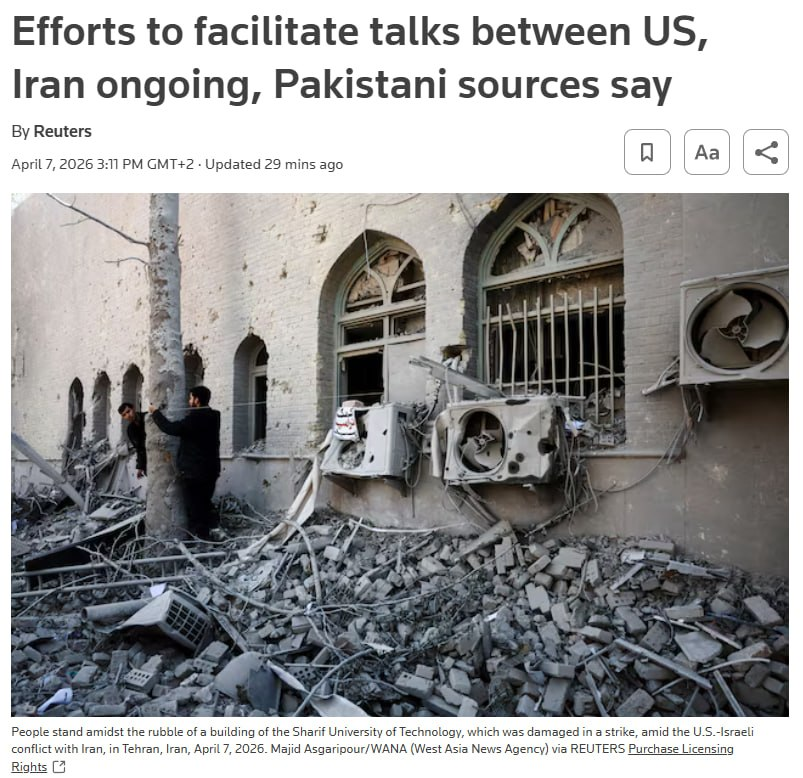 By afternoon on Tuesday, Reuters had reported Iran had rejected any proposal for a temporary ceasefire, instead seeking a permanent end to the war, adding that Iran was worried about the progress of negotiations because of previous bad acts and bad faith shown by the USA and Israel.