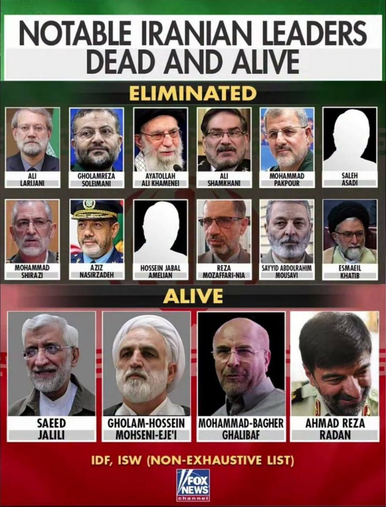 Fox News uploaded a list of assassinated Iranian leaders, while also featuring a list of potential targets they wish to kill, with a total of 16 senior names making the slaughter list.