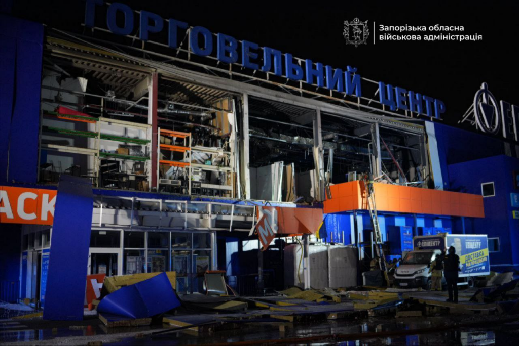 Head of the Zaporizhzhia Military Administration Ivan Fedorov reported that an hostile attack led to a hit on the parking lot near one of the city’s shopping centres, causing significant damage to the nearby shopping centre.